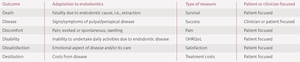 The outcome of endodontic treatment can be examined across four distinct dimensions: clinical (absence/presence of disease/pain); tooth longevity; economic; and, psychological, e.g. quality of life/satisfaction.4 Endodontology has traditionally used proxy clinical and radiographical parameters, based on a defined referential comprising clinical and biological data collected about patients by clinicians. Success or failure has been decided based on specific clinical findings, in conjunction with radiographic evidence of a healing periodontium.